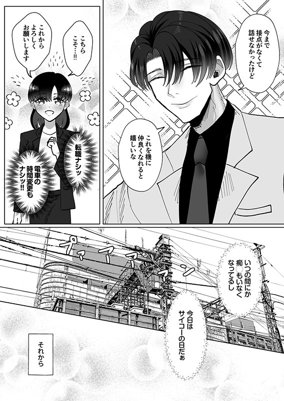 通勤電車でのしつこいイタズラに悩まされている OLのしおり。上司や部下と電車で乗り合わせた時にも、触られる始末で困っていたが……