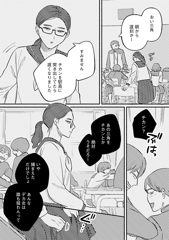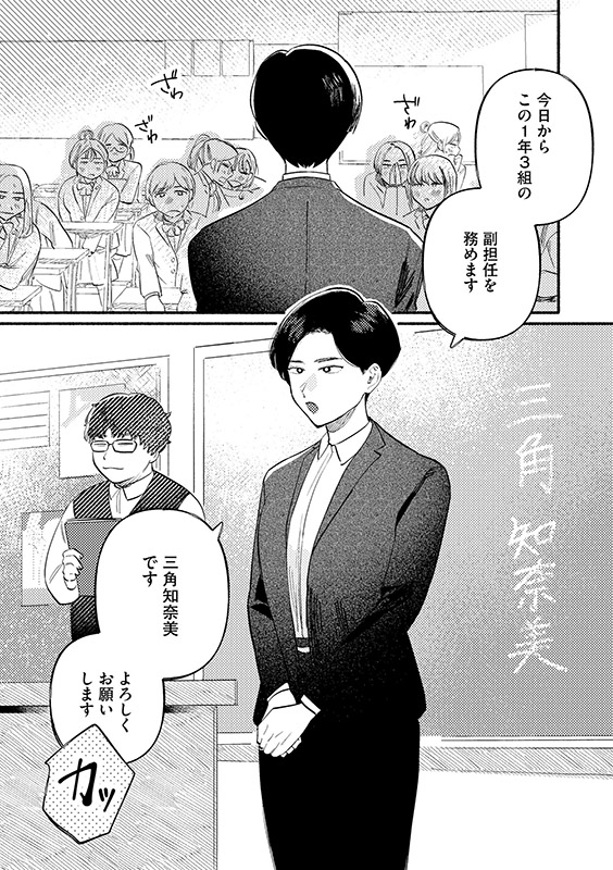 三角知奈美、クールで高身長の新任教師。