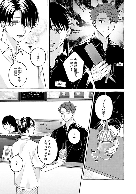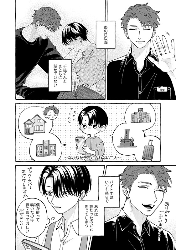 商業施設の書店でバイトをする大学生・柊は、休憩室で仲良くなったカフェバイト・千紘にアプローチされ恋人同士に。