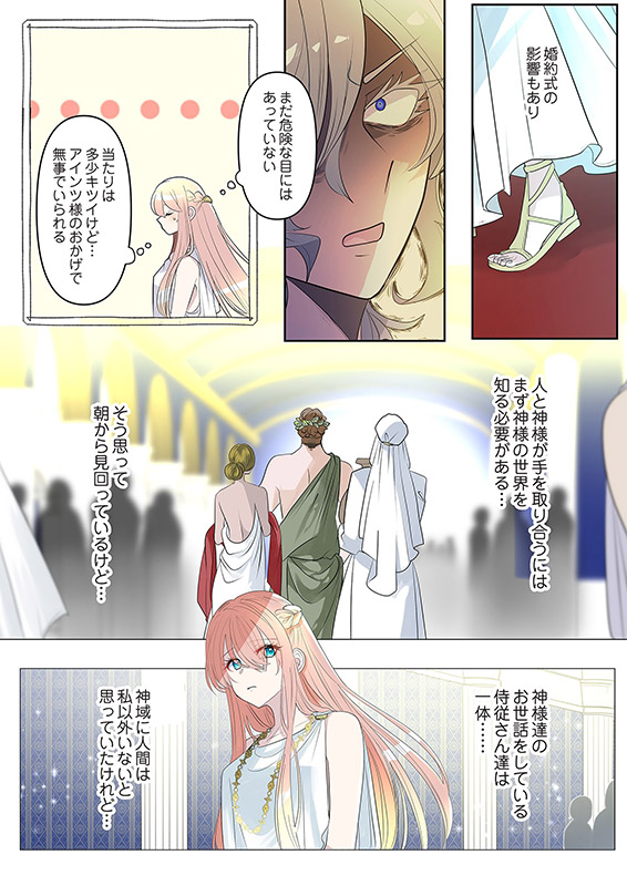 「私は今日、神様に生贄として捧げられる」 神様の見た目は人間と変わらないが、圧倒的な力で社会を支配している… 数年に一度、神様の中でも一番偉い主神様に人間は花嫁を贈っている── しかし花嫁は誰一人帰って来てはいない… 町娘の「ノル」は理不尽で不公平な現状を訴えようと、 親友のかわりに花嫁として捧げらるれることを決意した── 命を懸けて立ち向かうノルの運命は如何に!