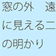 窓の外 遠くに見える二つの明かり
